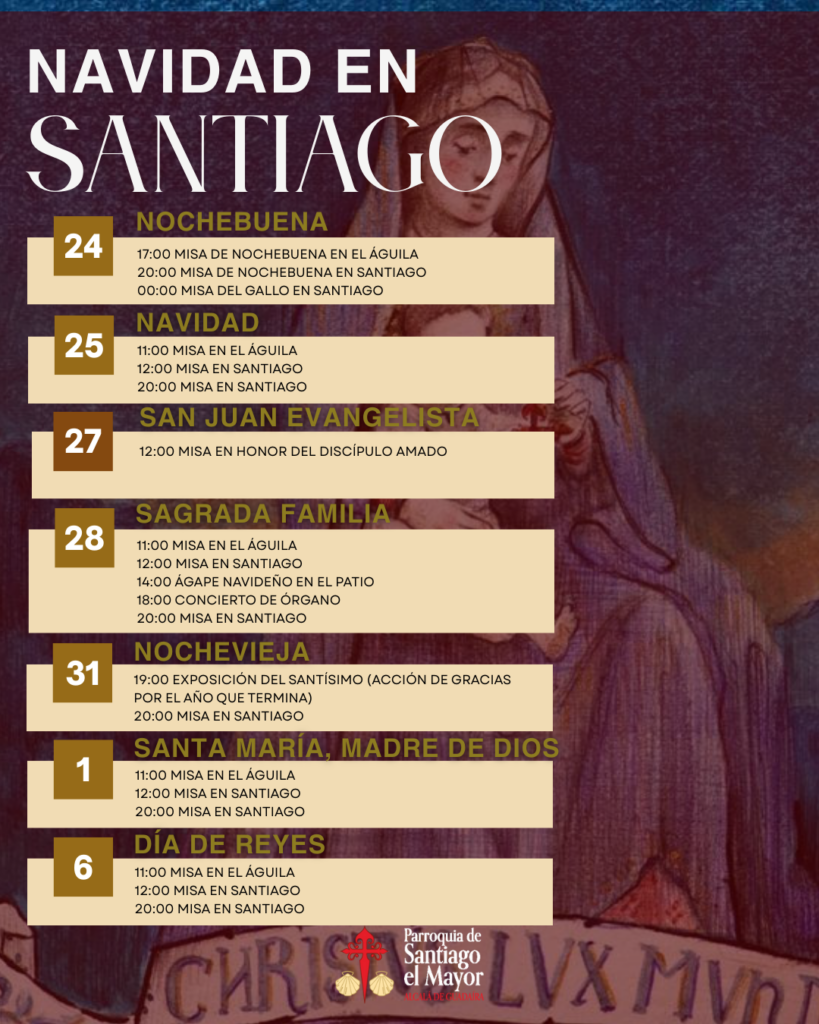 Publicamos los horarios de las diferentes misas que tendrán lugar en la Parroquia durante la navidad.