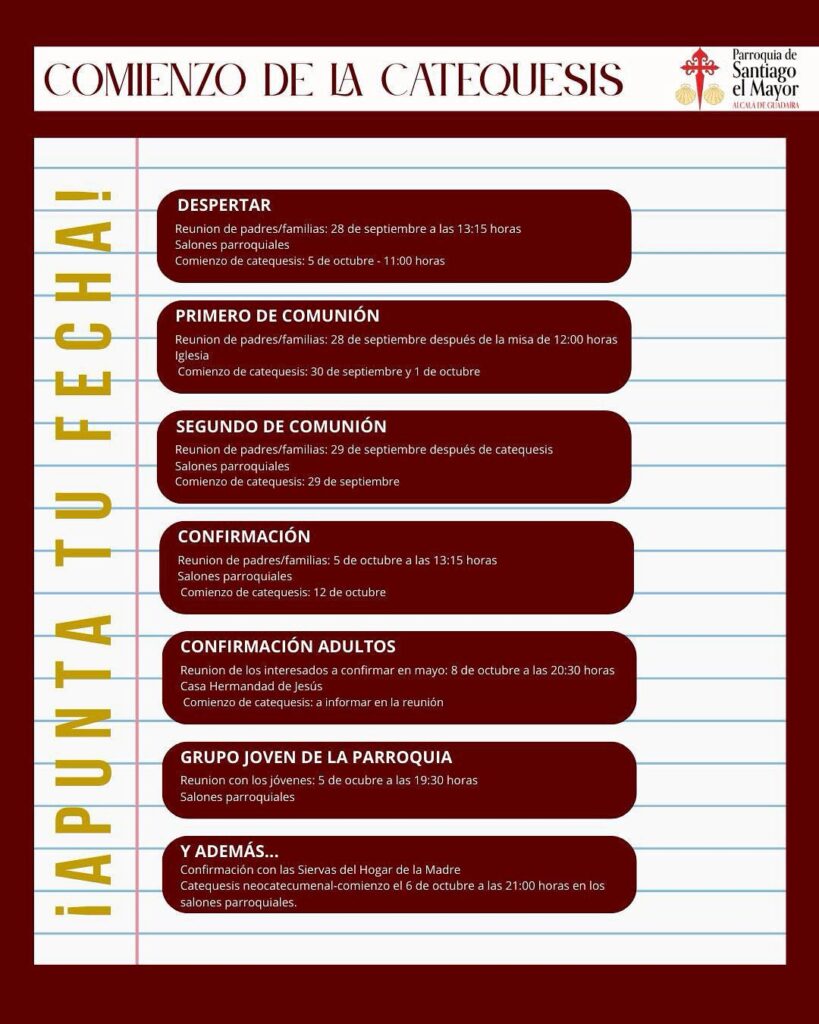 Mostramos los diferentes días que darán comiendo las catequesis en la Parroquia.